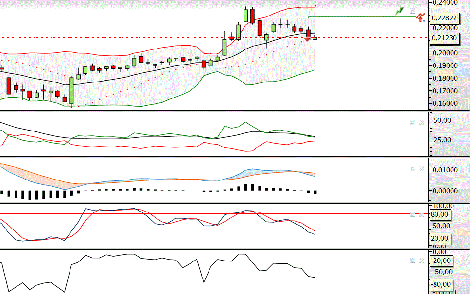 3 - MACD negativo e restantes indicadores técnicos oscilatórios a indicarem entrada curta;