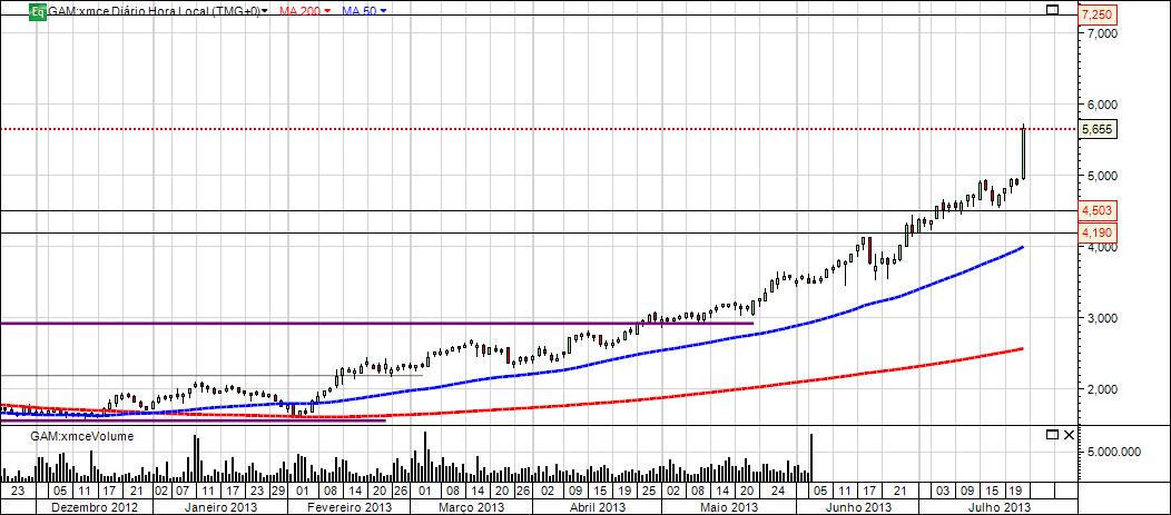 Hoje chegou aos 7€. Para ganhar máximos de 3 anos terá que quebrar os 7,50€. Já nem me atrevo a classificar esta zona como resistência, pela força com que quebrou todas as outras zonas dignas desse nome nesta cavalgada ascendente.