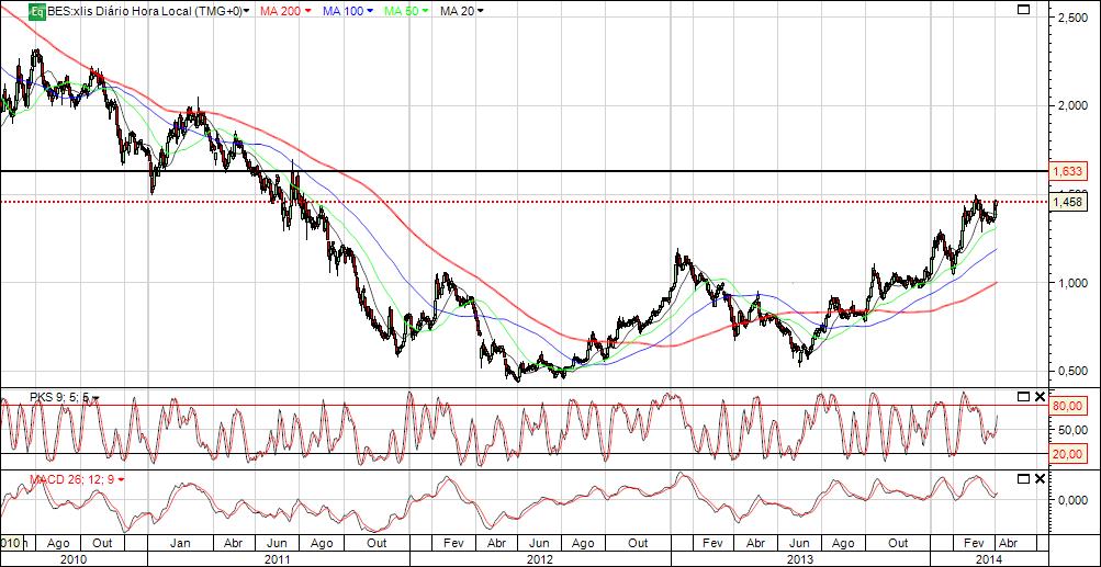 O BES fez hoje um fecho em máximos de cerca de três anos 1,463.