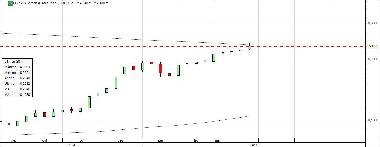 Estou longo no BCP e o que me leva a acreditar que podemos chegar a patamares mais elevados na cotação, são precisamente esta correções que o título tem feito na sua caminhada bull.