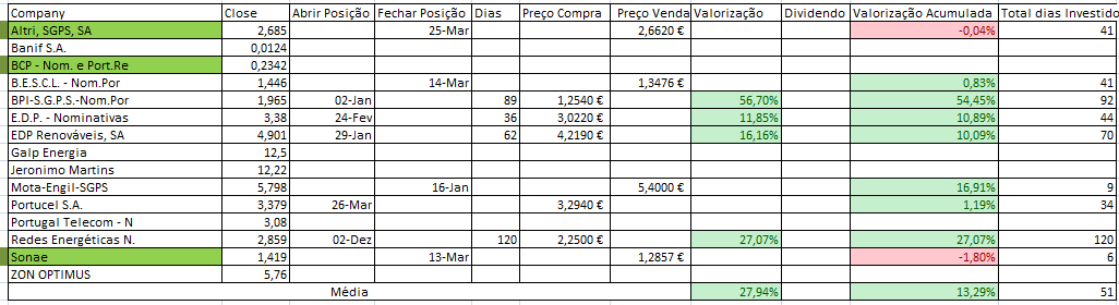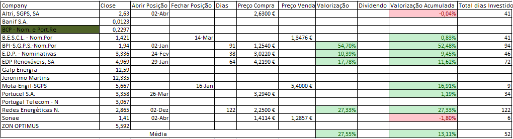 Estou com uma exposição superior a 100% vem aí a Páscoa os mercados estão voláteis, como tal vou aguardar.