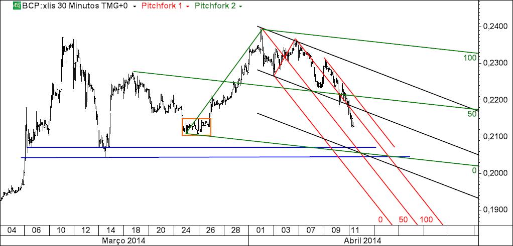 ninguém duvidará que são zonas muito interessantes, mas é óbvio que nada nos garante que aí se dê a reversão da correcção: qualquer um deles pode ainda descer até aos 61,8% ou então limita-se a fazer um breve deslize abaixo dos 50% (no caso do bes, pois o bcp já o fez), para brincar com os "fib guys"