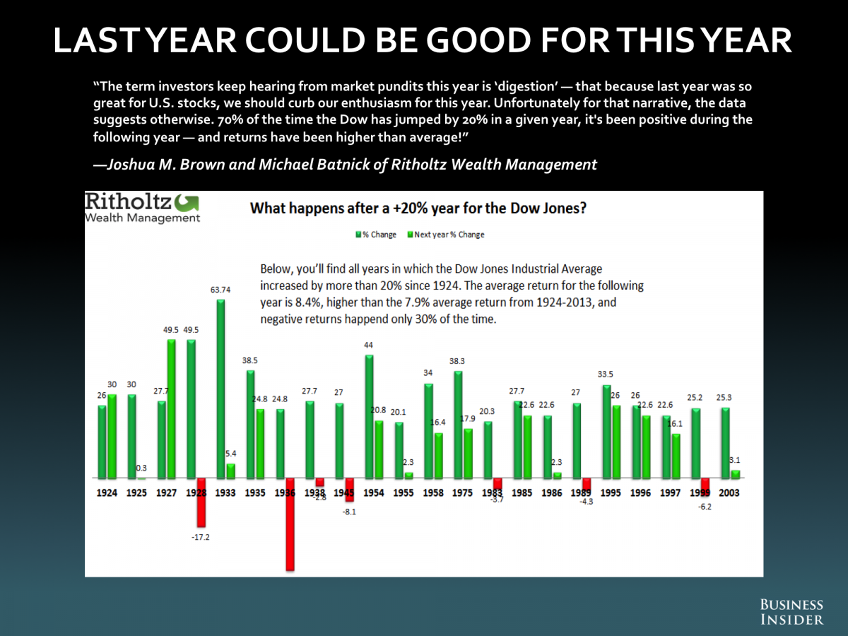Joshua Brown: Please keep in mind: There’ve been 27 corrections of between 10 and 20 percent in the post-World War II period that did not become full-blown bear markets (of 20 percent or more). This averages out to one 10 percent-plus correction roughly every twenty months. The average one of these episodes results in a decline of 13.3 percent and plays itself out over about 71 days (just over two months). We’ve had three of these episodes since the market bottomed in March of 2009 – a 16% correction in 2010, a 20% correction in 2011, a 9.9% mini-correction in 2012 and nothing in 2013, not even a hint of volatility.