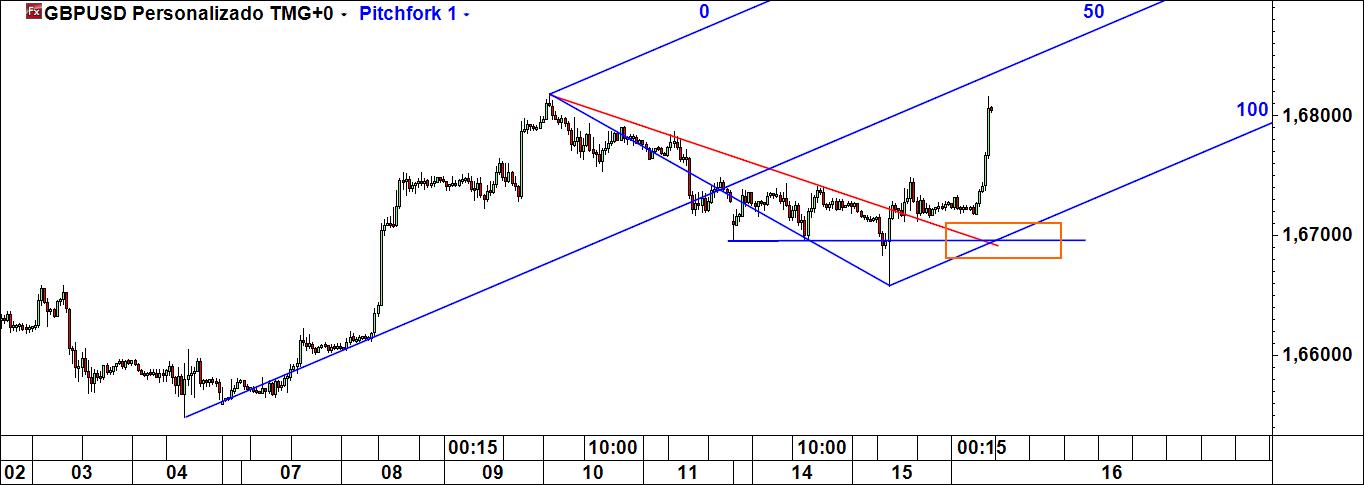 Pergunto eu, que não percebo muito das tuas regras, quando o GBPUSD reagiu naturalmente na fibo 50, antiga resistência que passou a ser suporte, não teria sido um bom ponto de entrada com um stop-buy acima dessa linha? Eu sei que agora é fácil dar palpites, mas fico-me a questionar se o teu método não poderia levar esse movimento em consideração antes de colocares as condições seguintes de esperares uma ida à LL da pitchfork ascendente.