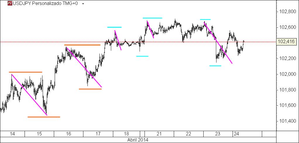 o último gráfico, com a visão mais aproximada, destina-se a mostrar os ursos tentando levar o preço abaixo da action line