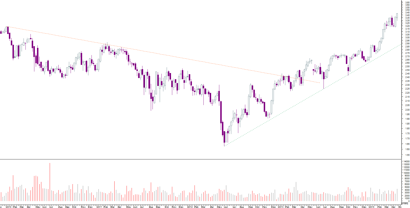 2 páginas atrás temos um gráfico do Ulisses com uma linha nos 3,6, que teve direito a um boneco triste (terá sido quando o Ulisses ficou pessimista em 2008). Se um suporte/resistência de há cinco anos for olimpicamente ignorado, temos, de facto, caminho livre.