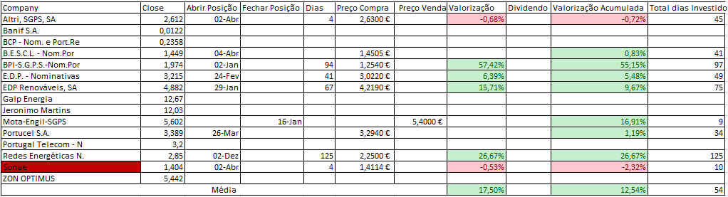 Pois hoje não vendi REN... ainda por cima lembrei-me 20 minutos antes do fecho dos mercados. Tenho verificado que nas últimas 2/3 semanas tenho falhado um pouco demais, tal deve-se certamente a uma maior pressão do quotidiano.
