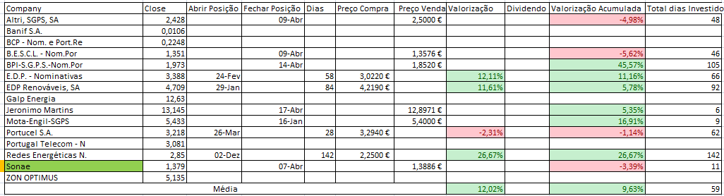 Hoje consegui contrariar a queda do PSI20 com as subidas da JMT (nada mal para primeiro dia após a compra), EDP e claro os States que hoje corrigiram/recuperam das quedas recentes.