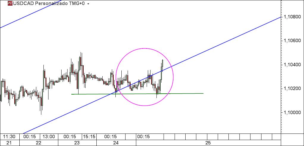 usdcad 45 m: ao afastar-se de uma linha que nos dá um sentido ou frequência não significa que o mercado esteja a inverter a tendência (que no caso levaria a que fossemos stopados),