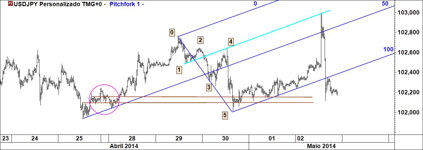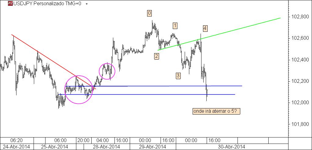 usdjpy 20 m: target atingido, nomeadamente a tal linha p2 - p4