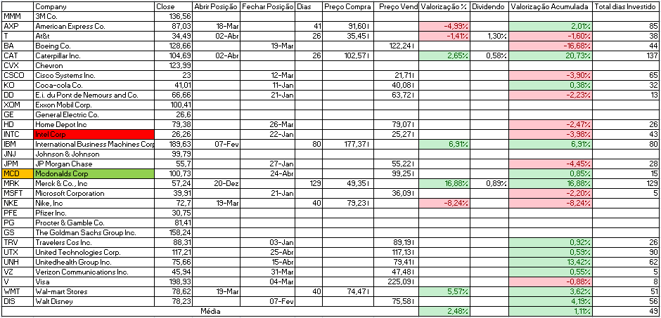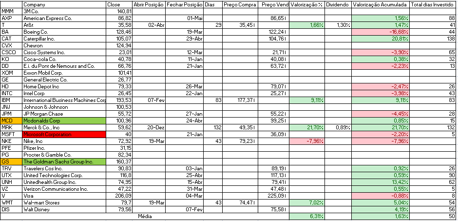 Para amanha apenas indicação para o DJI: Venda da McDonald's e compra da American Express.