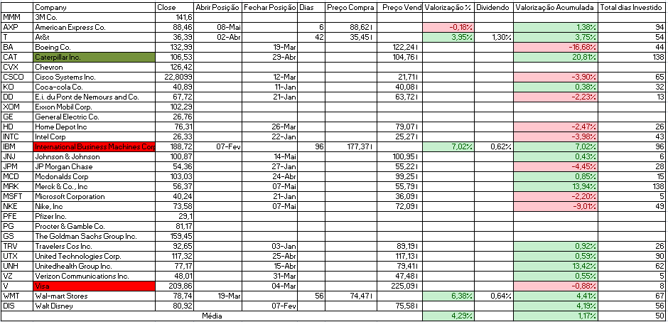Esta quinta-feira vendi IBM e comprei a Caterpillar.