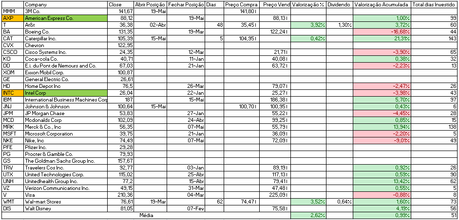 Para amanha as indicações são de compra de American Express Co. e Intel Corp (logo após indicação de venda).
