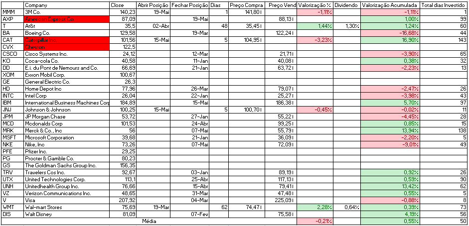 Já para o DJI é só compras: American Express Co., Caterpillar Inc., Chevron, International Business Machines Corp e Walt Disney.