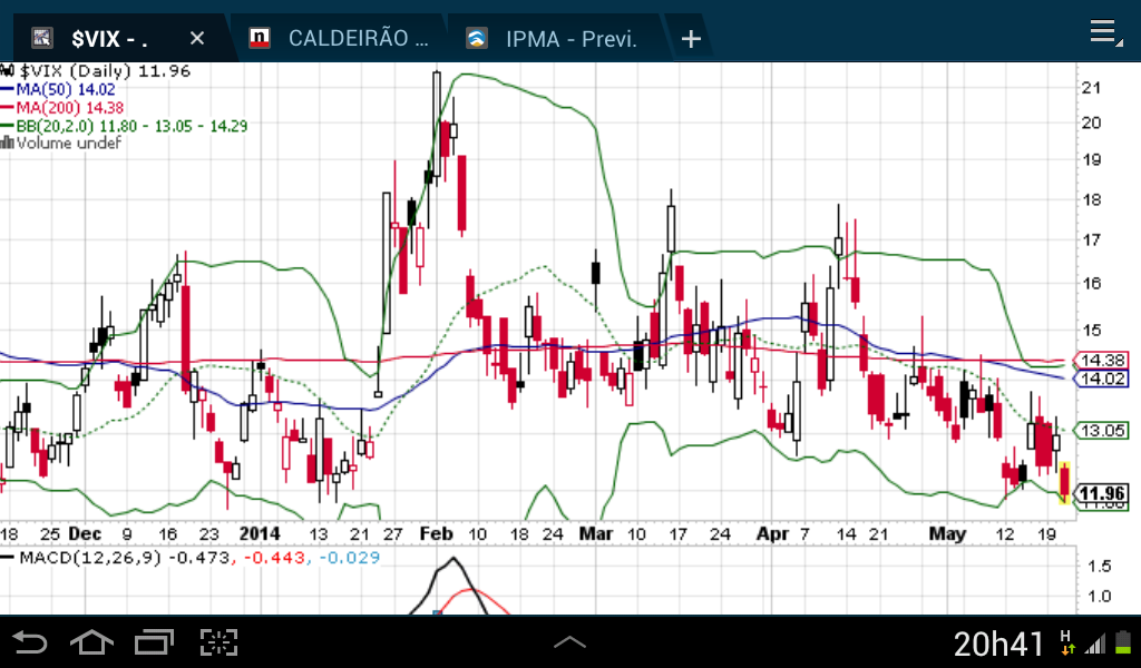 Com isso tiras as tuas próprias conclusões, esquece as Bollinger Bands ou outro tipo de indicador todo kitado que a malta aqui do forum usa, nada te garante que depois do vix tocar na BB inferior ou superior VIX se vai retrair para a zona de controlo, se assim fosse o gráfico do vix era lateralizado desde que nasceu!