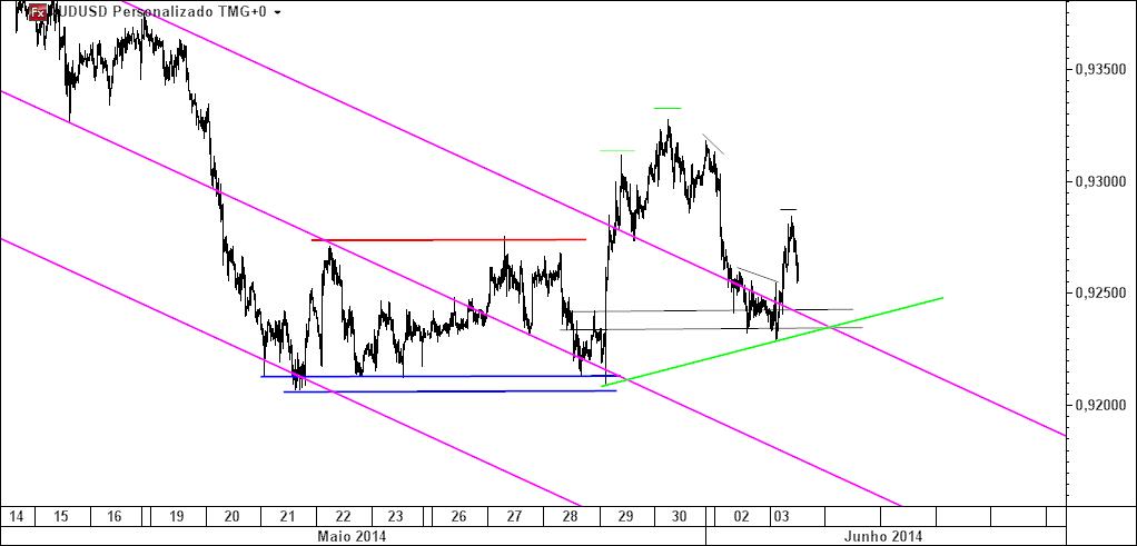 Todo o trade tem uma dimensão de preço (entrada e saída) e tempo. Cada plano deverá prever tais dimensões, entre outras coisas. No gráfico do usdjpy "queria-se" que o preço tivesse penetrado a zona assinalada no respectivo espaço temporal para encontrar a linha de resistência (a vermelho), originando a queda para o target. Verificou-se que assim não sucedeu, sendo que tal teste veio a ocorrer muito mais tarde do que o previsto no plano. Por isso, e por se aproximar o fim de semana, o plano traçado para esta oportunidade especulativa dizia-me para retirar a ordem pendente. Caso ela tivesse sido executada (com, por ex., uma venda ao mercado", o que poderia desde logo contrariar o ratio r:r 1/3, mas isso dependerá de cada um), seria importante a colocação da stoploss no b/e logo que o preço se encontrasse a cerca de metade do target, com ou sem retirada parcial de proveitos. A ter acontecido esta deslocação para b/e, a ordem terá sido executada.