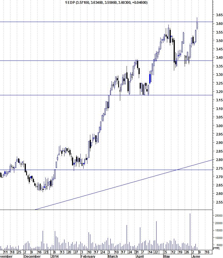 Cada vez que recebo a factura da EDP me convenço mais que é uma boa aposta não só a curto prazo, mas a médio longo prazo! Já estou à espera de uma pequena correção desde os 3,40 e não há meios de conseguir entrar outra vez! É para Norte não há duvida! Continuo à espera da correcção, pode ser que quando o artista sair eu possa entrar