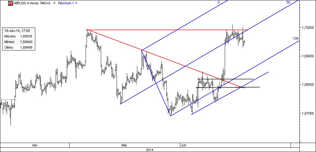 Preço continua sua relação com a área anteriormente identificada. Pivot c do fork alterado para acompanhar a evolução do preço. Continuando a seguir o comportamento do preço.