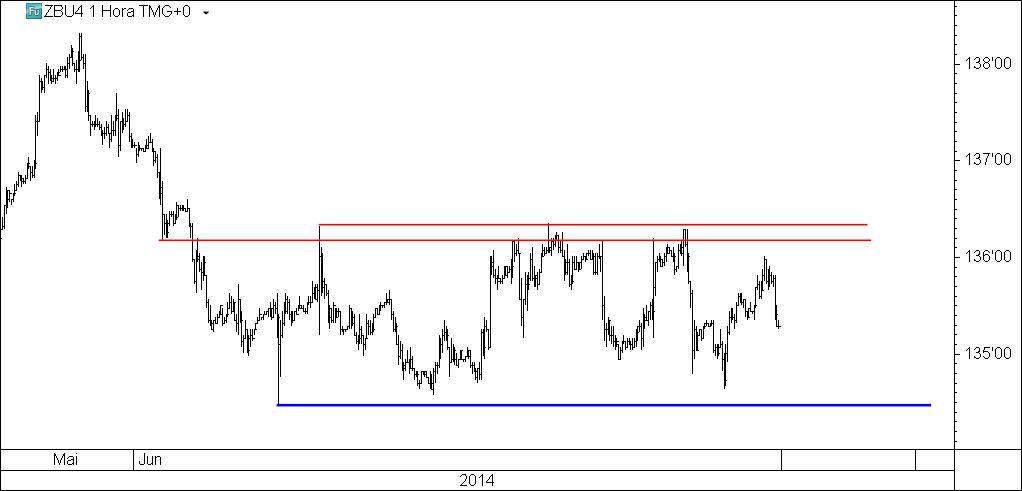 Mercado denota estar em fase de acumulação. Como trader de momentum, estas fases não me interessam, a não ser que se percepcione uma "banhada" e/ou um bom local para colocação da stoploss. Fazer o trading do range "exige" certo tipo de ferramentas.