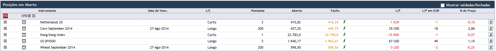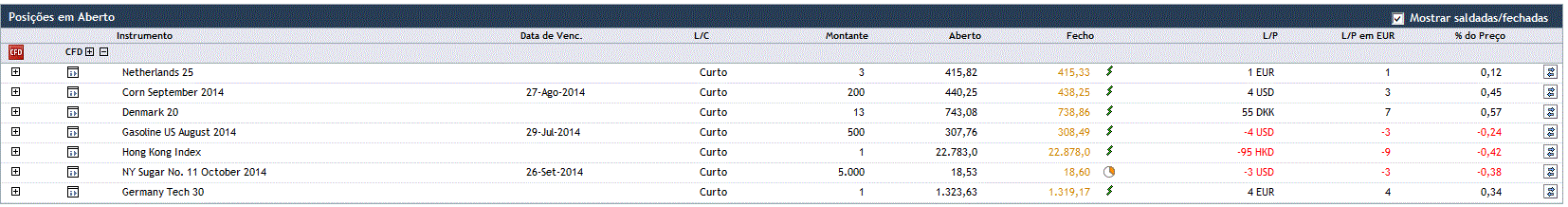 Fecho da posição curta.