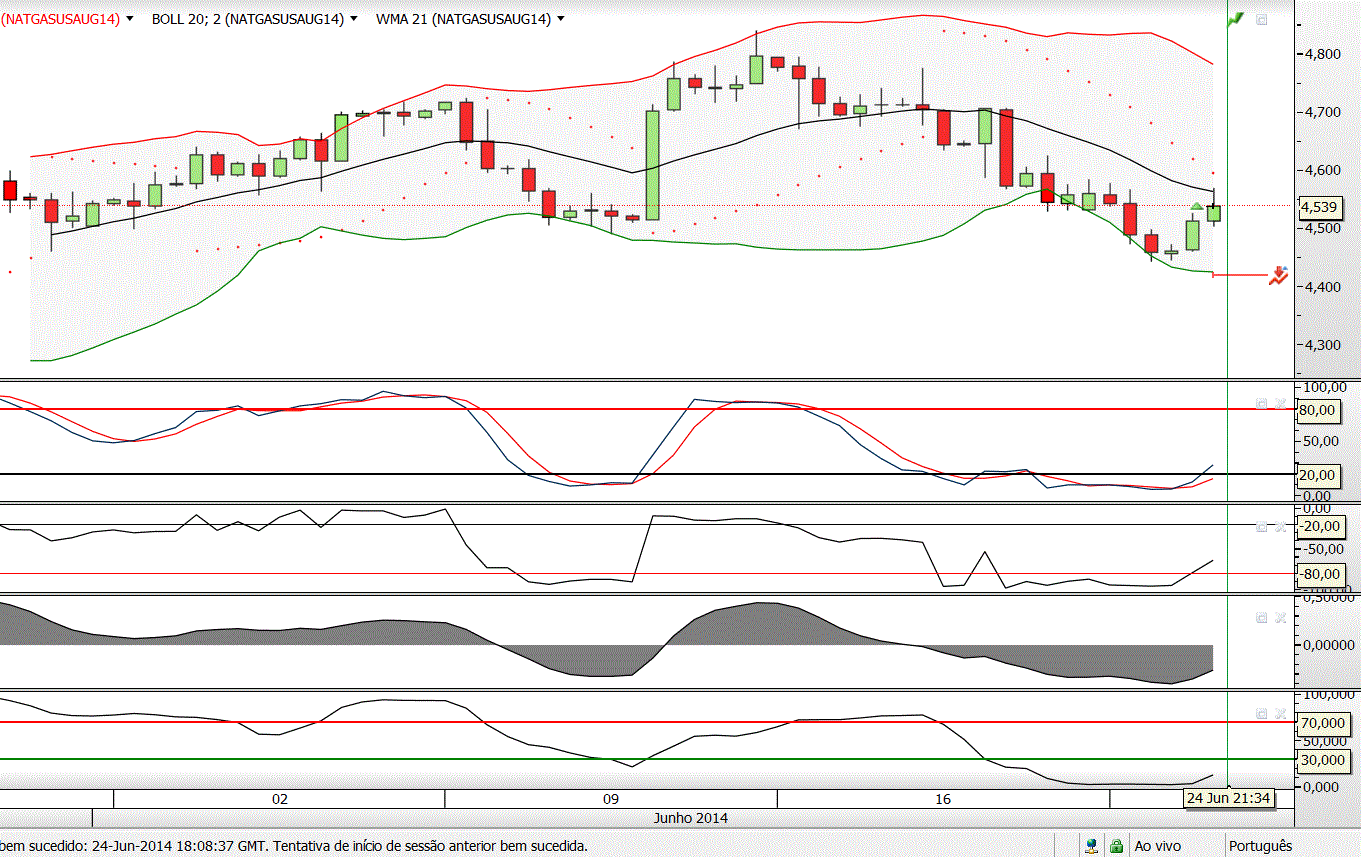 Quanto ao petróleo: se no teu plano a ideia era aproveitar o ressalto ascendente na bb de baixo e a ida do preço até à bb de cima, porque é que só entraste a 106,39? Não equacionaste colocar uma ordem de compra junto à bb que sustentaria o ressalto? A tendência estava do teu lado.