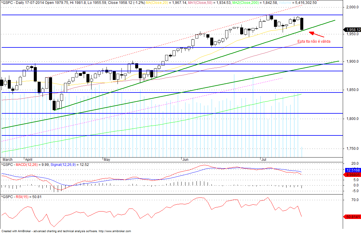 Podem vir com a história do avião, mas se não fosse o avião seriam os Israelitas e Palestinianos ou até podia ser o BES. A verdade é que o preço no DJ não conseguiu passar a linha superior da Wedge, e andou que tempos a tentar quebrá-la, como não conseguiu começou a perder força e começou a cair mesmo antes do fenómeno avião.