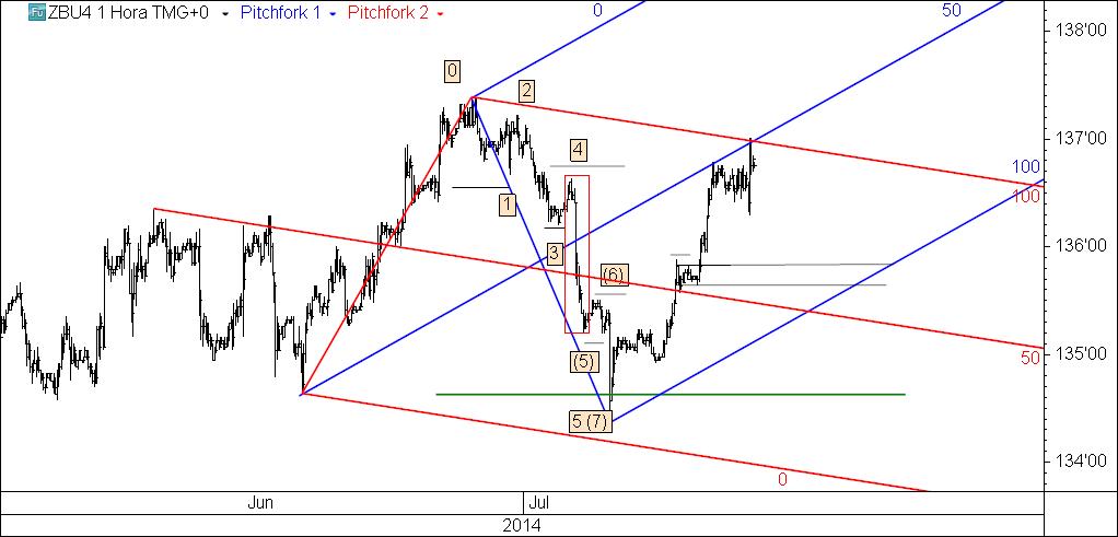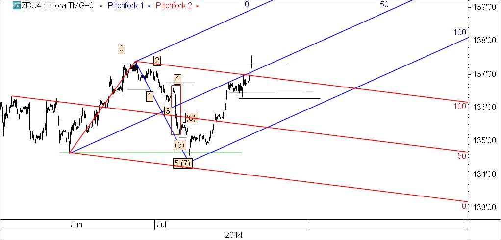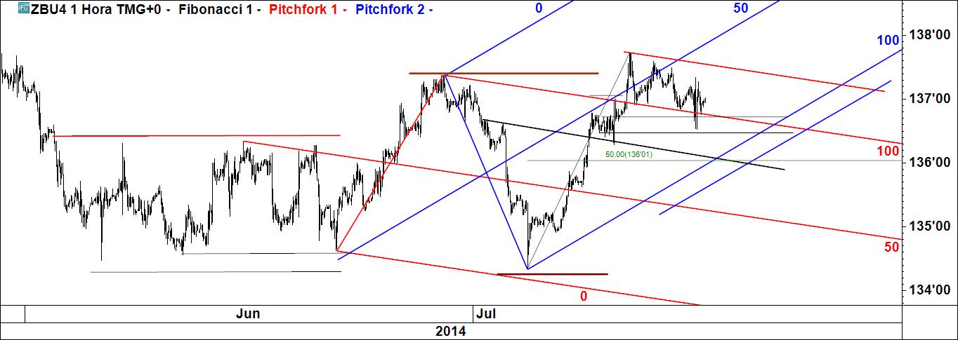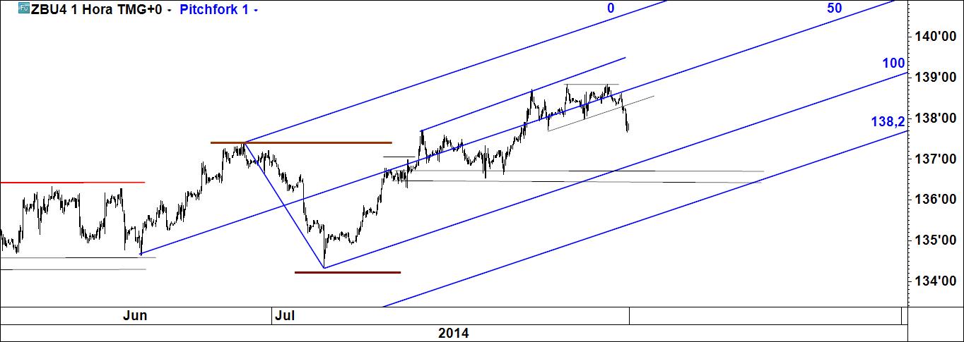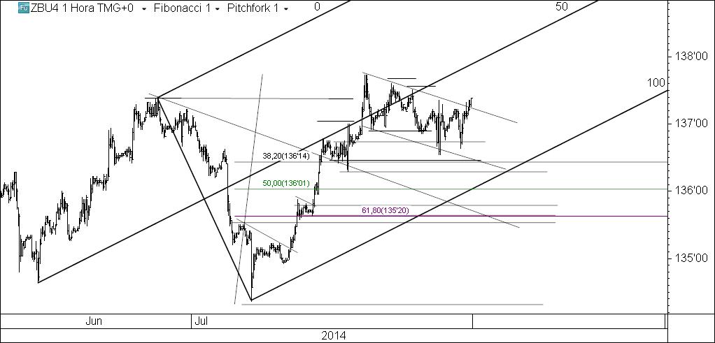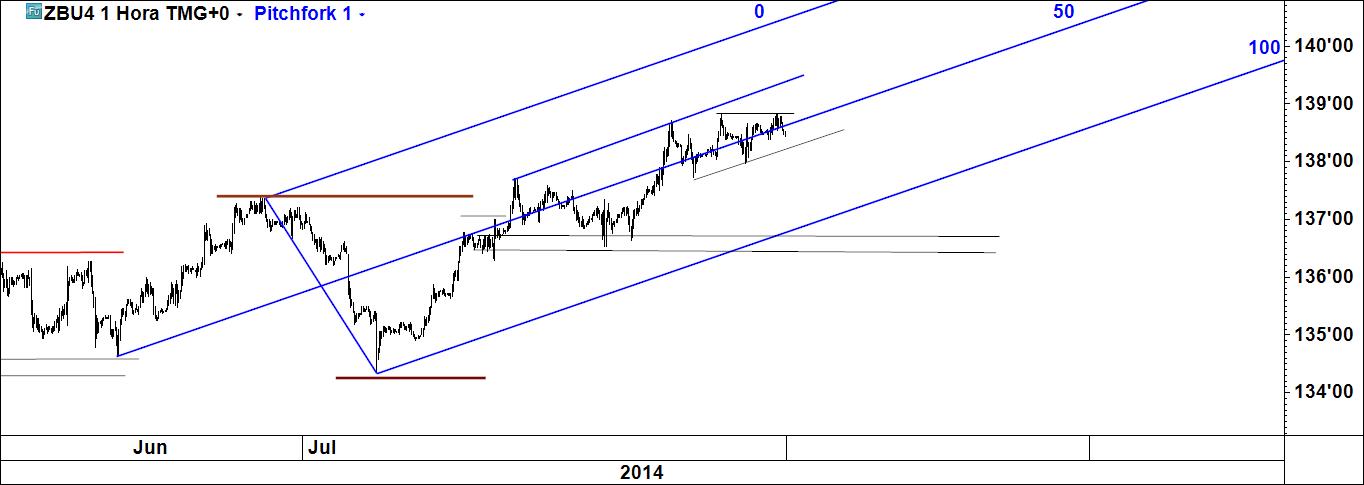 30y - t-bonds 1 h: observando a reacção do preço às linhas.