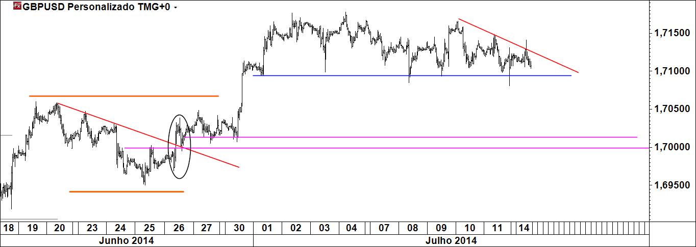 gbpusd 45 m: permanece encaixotado, embora mantendo toda a sua potencialidade.