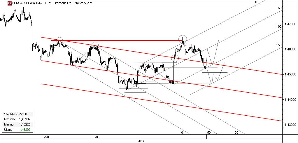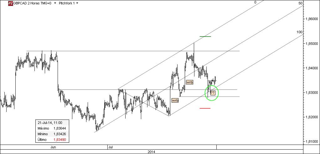 Entretanto, como outros mercados não param, eis algo para acompanhar de perto: gbpcad 2 h e eurcad 1 h.