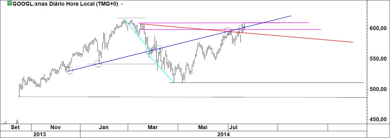 Nota: uso as linhas de acordo com a minha leitura e não são elas que me usam (nem, muito menos, certos conceitos livrescos que nos sufocam com a sua pretensa objectividade). Por isso decidi acrescentar uma linha ao desenho (linha que para mim sempre lá esteve e quem segue este tópico já sabe disto). É claro que esta técnica nem sempre resulta (e alguma resultará?) e desconhece-se qualquer estatística/probabilidade associada à mesma. Se uma linha desse tipo aguentar, temos boa informação. Se não aguentar, a informação também será boa.