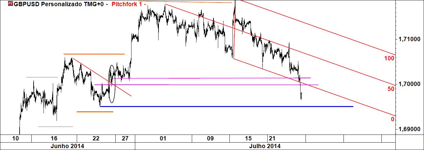Possibilidade: o preço não nos dá a honra de visitar a janela. Em tal caso, transmite uma forte mensagem (preço está com pressa em subir) e usar-se-á o mesmo desenho, mormente a median line superior, para entrar no mercado, ajustando-se a stoploss e o target em conformidade.