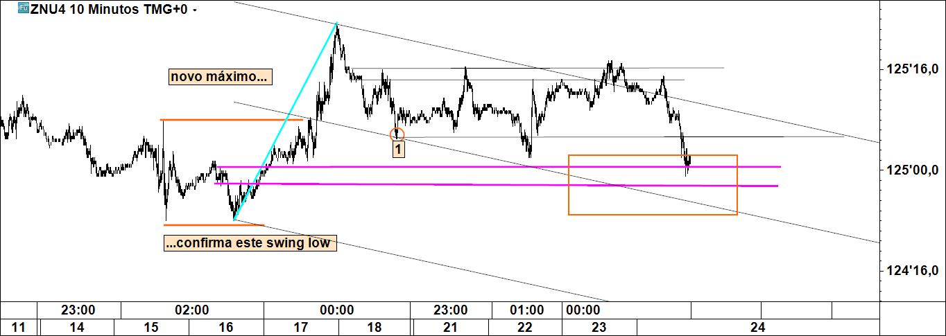 As mesmas ferramentas, mas diferentes mercados e timeframe: 10y t-notes 10 m.