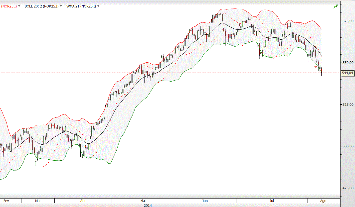 As mesmas razões evidenciadas aquando do fecho da posição curta no índice NOR25, com a diferença que o HSI está muito próximo da BB inferior o que, em bull market, costuma funcionar como zona de suporte.