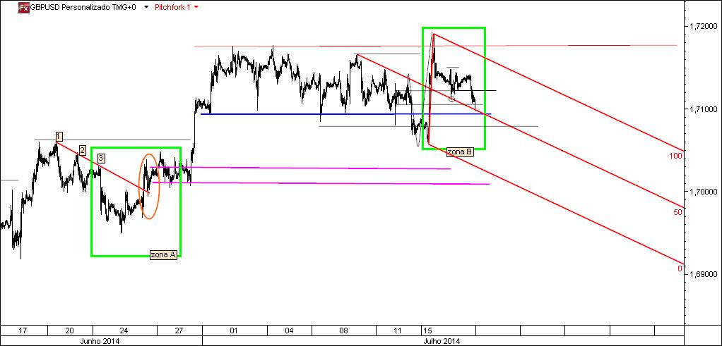 Gráfico 3: usando a metade do swing de controlo e o pivot 1 para construirmos a inside median line ou, se se quiser, linhas de acção-reacção (ambas sobejamente conhecidas no âmbito deste tópico).