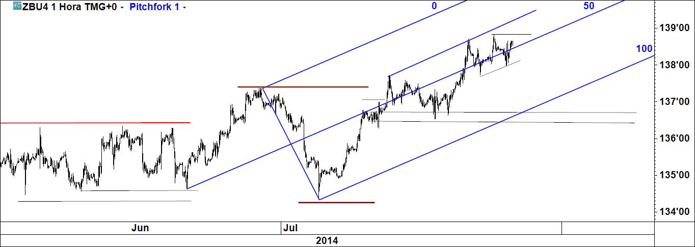 30y t-bonds 1 h: até quando manterá a relação com a median line?