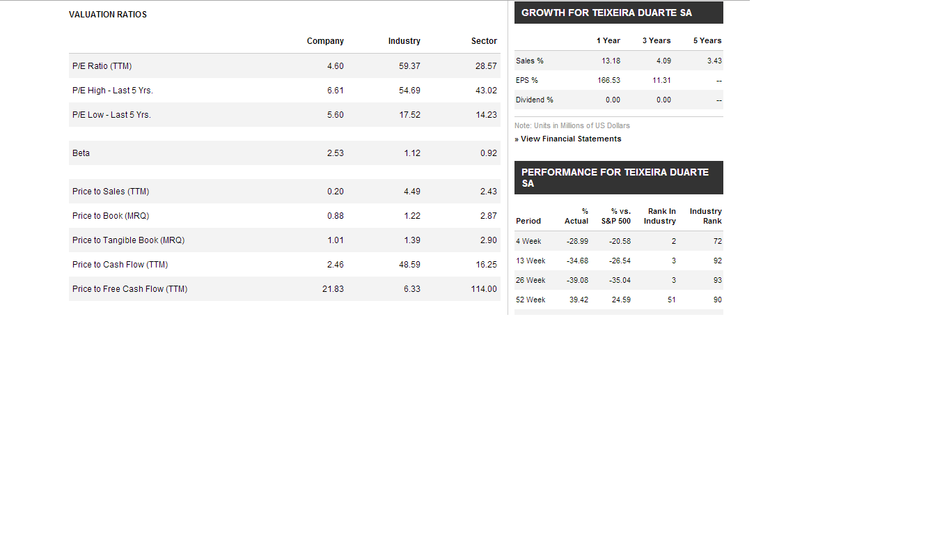 A leitura do TIago tem uma falha o per verdadeiro não é 5 lucro de 65m mas mais de 10 lucro aproximado ajustado de 30M em 2013.... mas eu olharia sempre para o forward per nunca po anterior e este ano é a historia do fx apontava para um lucro forward corrigido de fx de 40m no ano faça as contas com a cotação atual.... nao vou fazer grandes analises sobre TDU.... deixo mais info no BE ah BA....