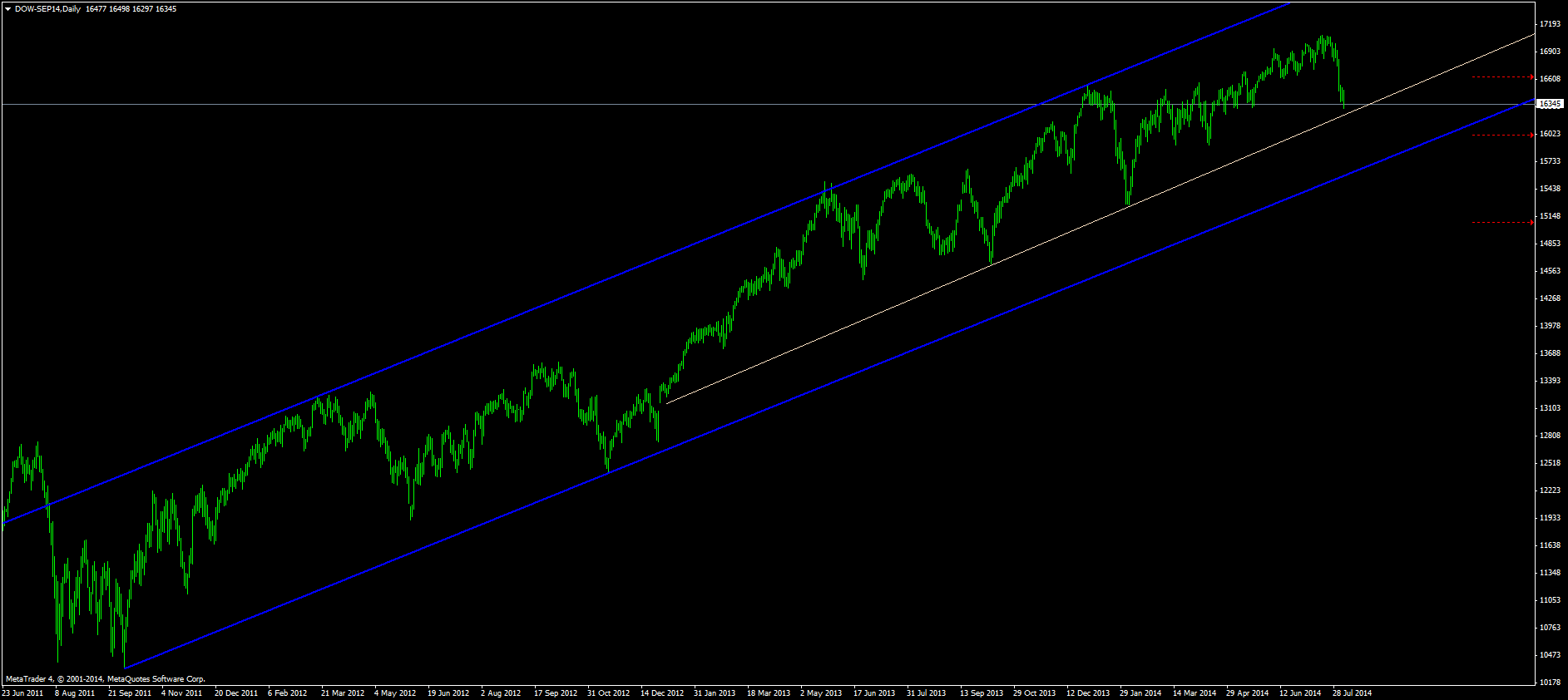 O Dow, o paizinho dos indices, ainda está num canal ascendente de longo prazo, com o preço a chegar a uma Lta. Saio dos curtos se reagir à Lta e entro em buy.