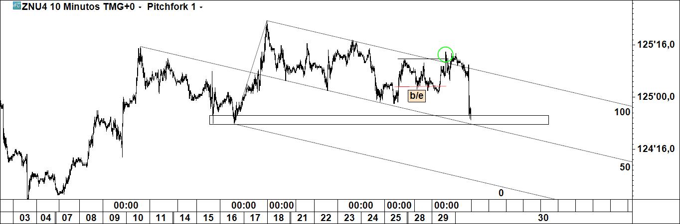 10y t-notes 10 m: stpoloss previamente colocada em b/e atingida, negócio fechado. Em timeframes apertados, apertada deve ser a gestão do risco. Entretanto, enceta-se perseguição a nova oportunidade.