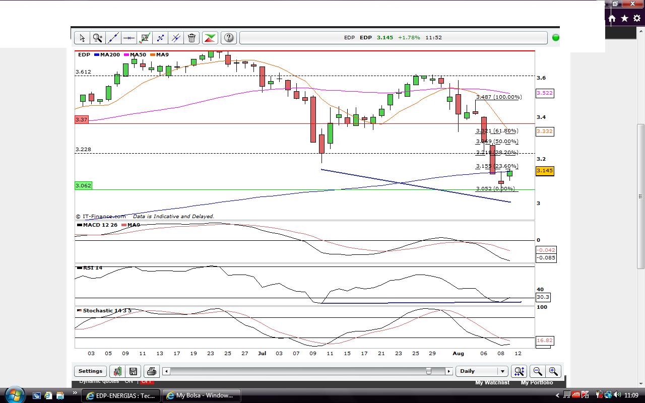 Se realmente se der uma subida que nao quebre os 3,60€, maximo do ombro, pode ser um excelente ponto de entrada curta. Se quebrar os 3,60€ os touros é que mandam na ação.