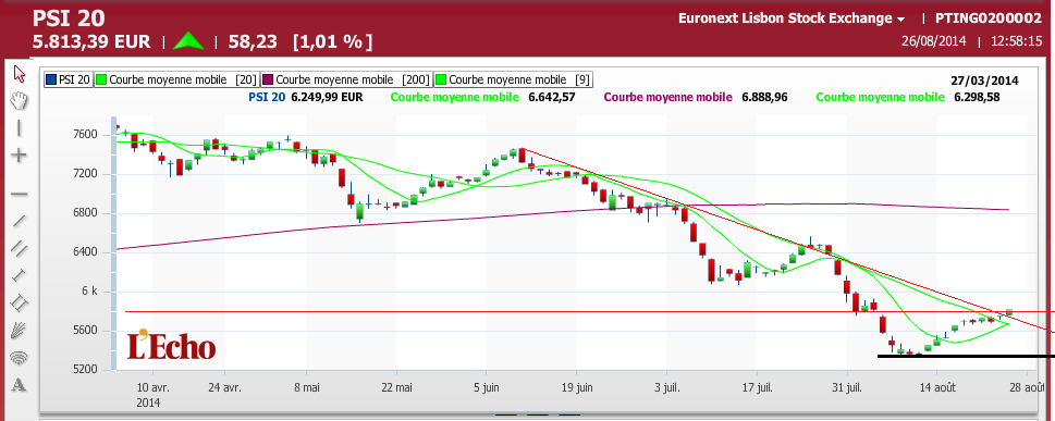 dax no retracement de 50 e 61,8%, nas mm50 e 200 dias. mercados americanos em máximos históricos com continuada perda de força interna, com rotação de capital por sectores, com provável fade de máximos durante inicio de Setembro. psi em retracement e no primeiro grande objectivo de ressalto.