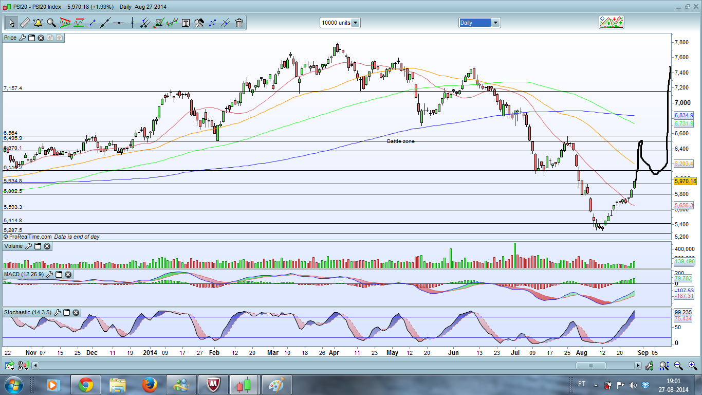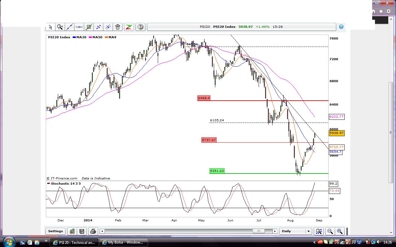 Quem observa os gráficos anteriores, pode ver nitidamente que à cotação de hoje, o Psi está sobre uma Ltd de curto prazo e se nas próximas sessões a ultrapassar, temos inversão.