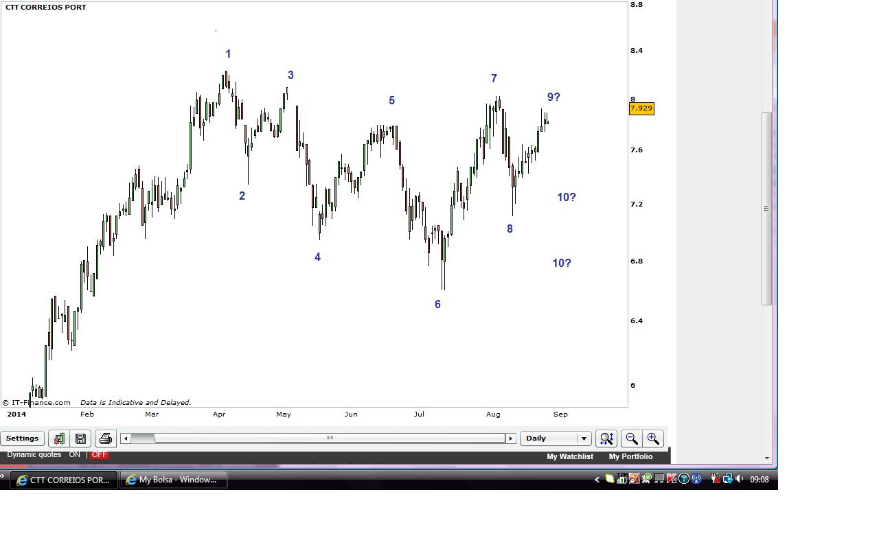 a acção continua a fazer os ciclos habituais... nada de novo a apontar. Penso que desta vez não vai fazer um lower low, mas antes travar algures nos 7,00 e possivelmente inicial um canal ascendente...