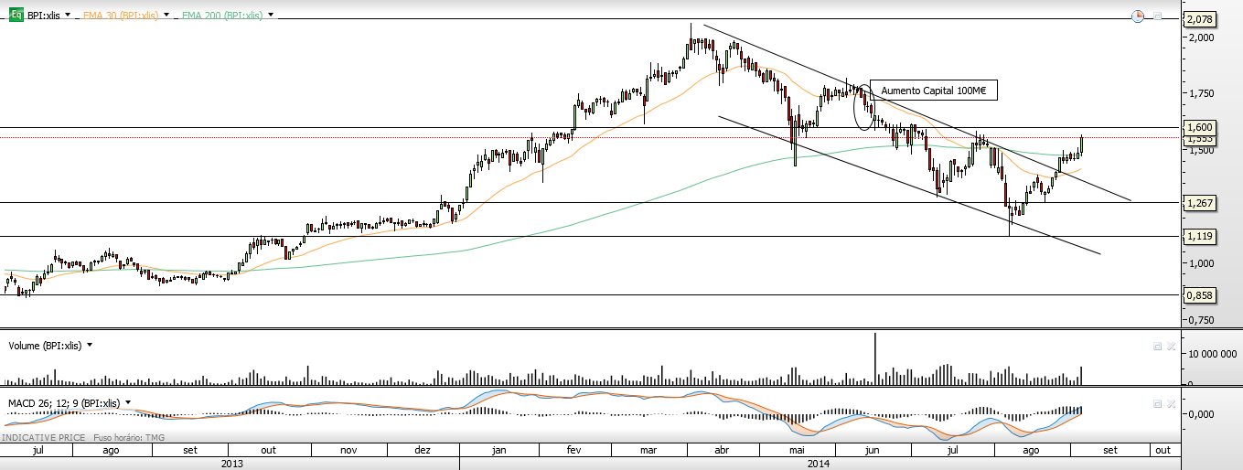Bolsa é tanto matemática quanto psicologia. No médio prazo todos os ventos correm a favor do BPI inclusivé a eliminação dum concorrente peso como o BES. No longo prazo infelizmente a economia portuguesa continua rastejante e cada vez pior coisa que limitará o crescimento do BPI