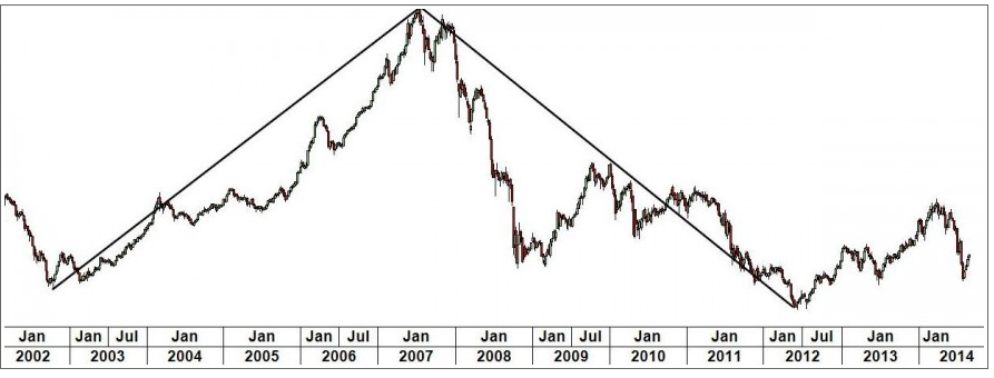Um bom sinal foi o low em agosto de 2014 ser superior ao low de julho de 2013 e esperar que o recente low aguente