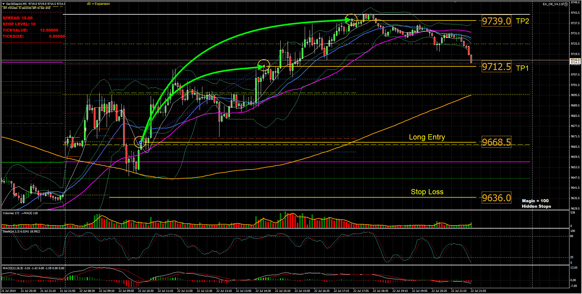 Certamente não irei satisfazer os mais exigentes, mas aproveito para anexar uma imagem, onde se poderão ver em detalhe todos os trades que efectuei em 22-07-2014, incluindo as duas posições que fechei às 07:42h Portugal (08:42h Plataforma MT4).