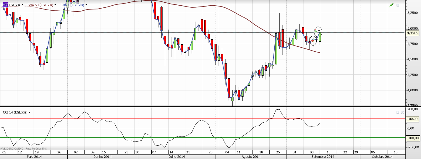 Hoje só acredito em suportes, resistências e linhas de tendência. Na Mota vejo um suporte forte nos 4.40 e uma ligeira resistência nos 5,04. A tendência, na minha opinião, é ascendente.