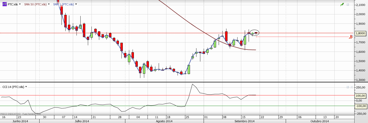 Na minha opinião é no semanal que ela vai ter que mostrar o caminho, na zona da SMA50, se quebra em baixa ou se mostra força a partir daqui.