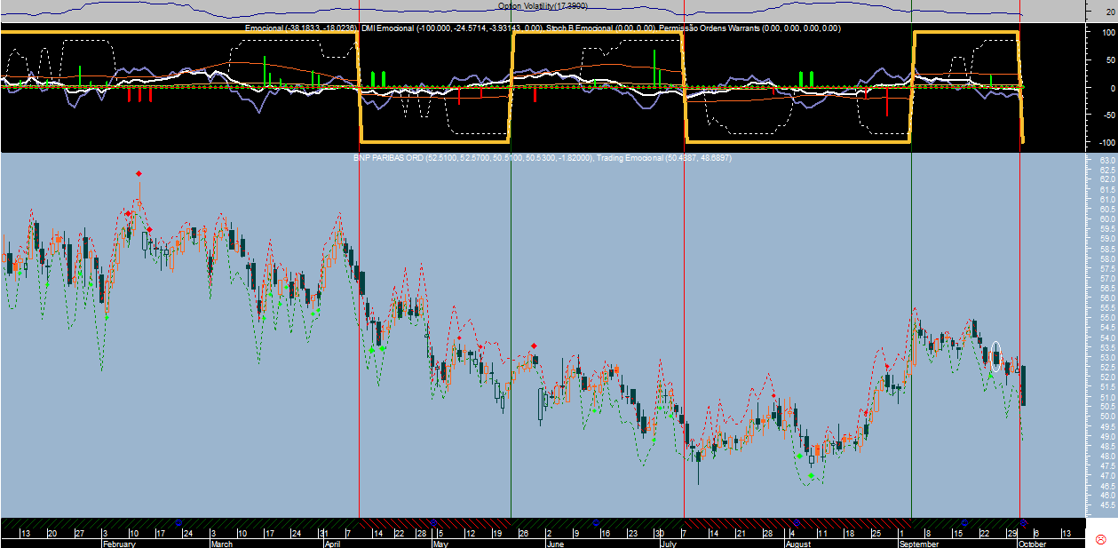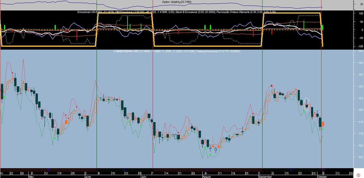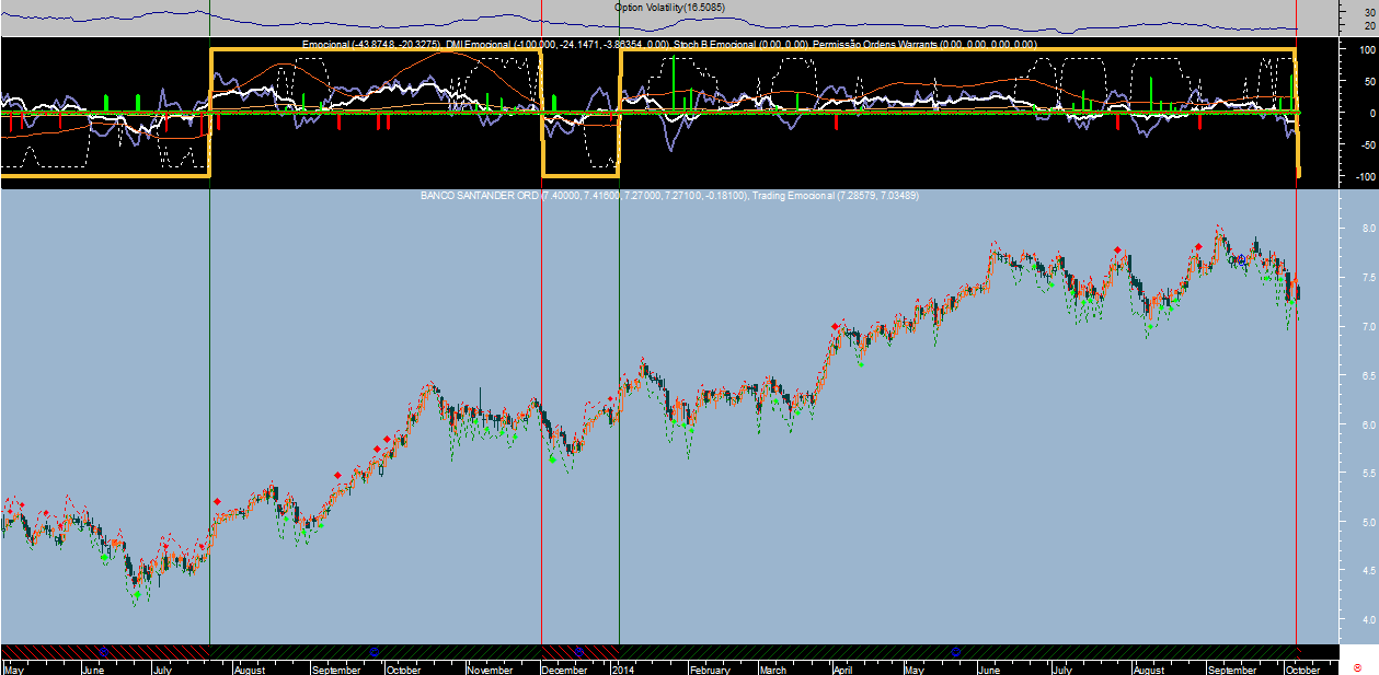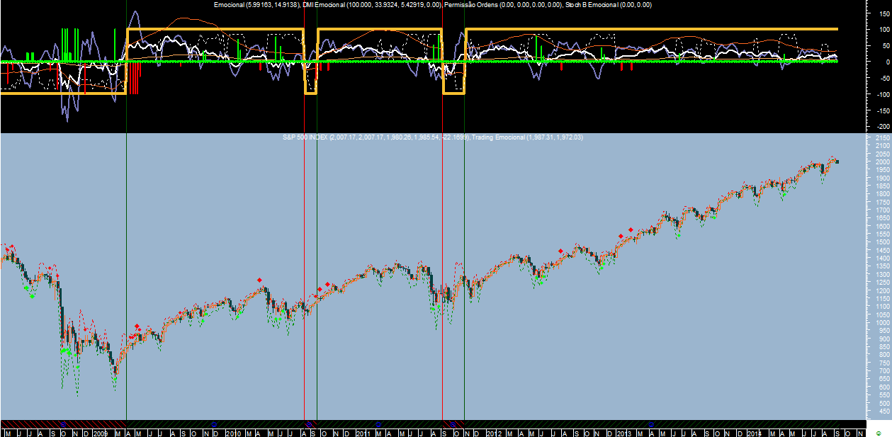 No caso do sistema “Emocional” a forma de calcular os sentidos predominantes do mercado tem a ver com os desequilíbrios emocionais que predispõem a maioria dos participantes a ter maior vontade de ficar comprados ou vendidos, ou seja, lida apenas com a medição das emoções predominantes de médio e longo prazo. Um método que reconheço ser pouco ortodoxo e que se afasta por completo dos tradicionais níveis de ressalto dos mercados que definem posteriormente os futuros suportes e resistências.