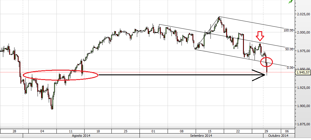 Caso quebre em baixo, a linha inferior, poderemos ter um disparo de vendas até aos 1945.