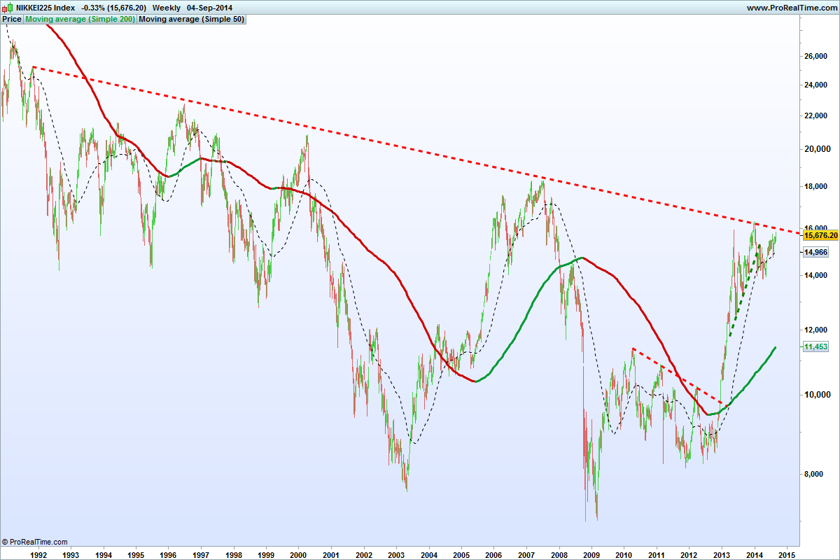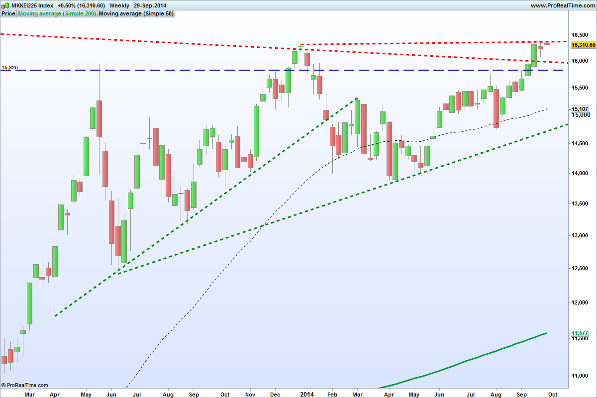 A posição no Nikkei será encerrada apenas aguardo que atinga o valor do stop, caso tal não aconteça e quebre a resistencia a posição será encerrada imediatamente.